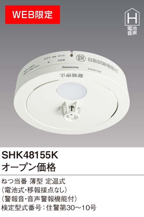 【WEB限定】Panasonic 電池式住宅用火災警報器 ねつ当番 薄型定温式 SHK48155K☆まとめ買い値引☆2台単位での購入のみ
