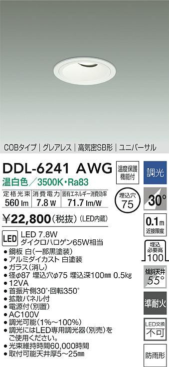ホーム(トップページ) >> DAIKO LEDダウンライト DDL-6241AWG
