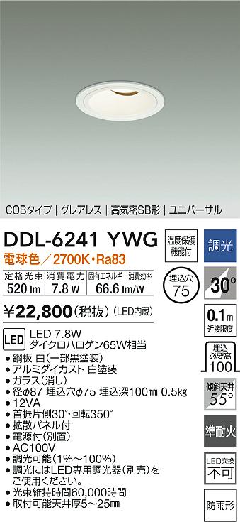 ホーム(トップページ) >> DAIKO LEDダウンライト DDL-6241YWG