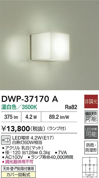 ホーム(トップページ) >> DAIKO LED屋外ブラケット DWP-37170A