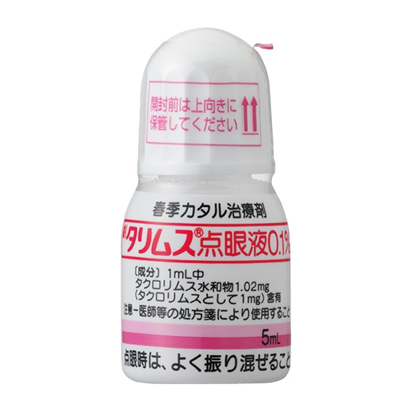 有効成分(一般名) | タクロリムス水和物 | 規制区分 | 劇処 | 使用区分 | 外用薬 | 規格/包装単位 | 0.1%5mL1瓶×1瓶 | | 販売包装単位コード | 14987123148778 |