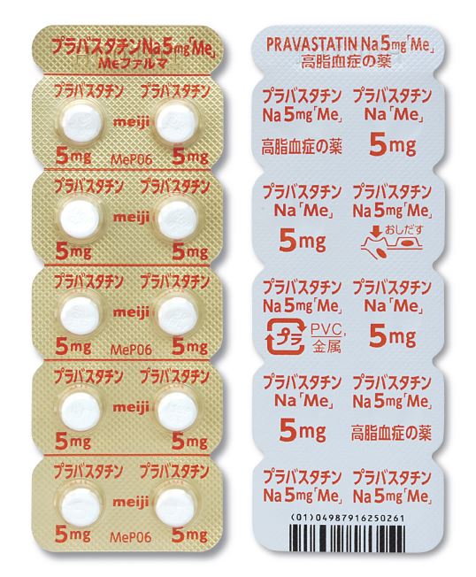 有効成分(一般名) | プラバスタチンナトリウム | 規制区分 | 局処 | 使用区分 | 内用薬 | 規格/包装単位 | 5mg/錠 PTP 10錠×10 | | 販売包装単位コード | 14987916000535 |