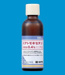 有効成分(一般名) | アトモキセチン塩酸塩 | 規制区分 | 劇処 | 使用区分 | 内用薬 | 規格/包装単位 | 0.4%1mL 100mL×1瓶 | | 販売包装単位コード | 14987190084702 |