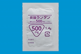 有効成分(一般名) | 炭酸ランタン水和物 | 規制区分 | 処 | 使用区分 | 内用薬 | 規格/包装単位 | 分包 500mg1包×600包 (1包:1.4g) | | 販売包装単位コード | 14987190053517 |